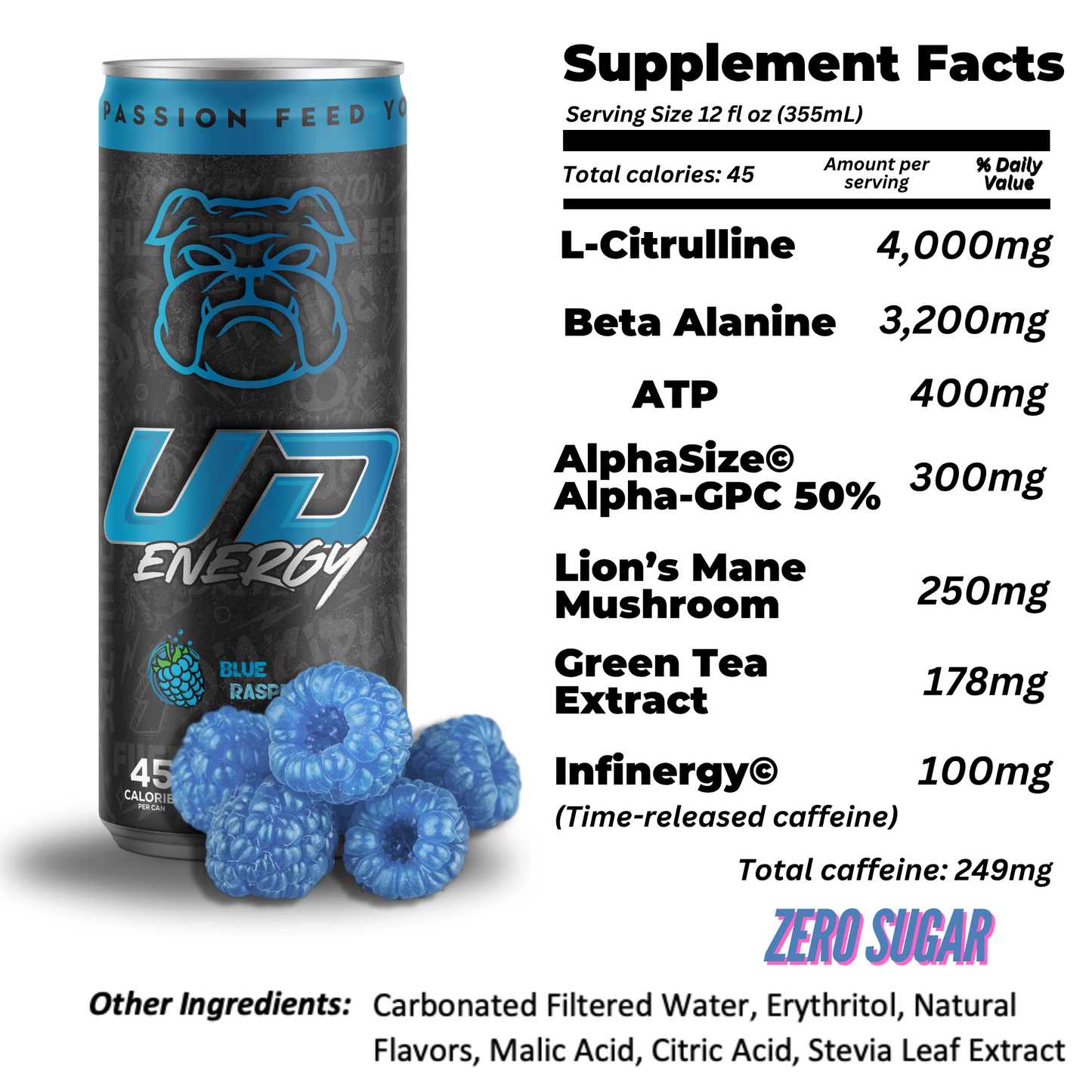 Before the Underdog Performance Drink, there was UD Energy + Beta Alanine—the formula that started it all. Built for those who aim higher, train harder, and fight longer, this powerful drink set the foundation for peak performance. With the added benefits of Beta Alanine and ATP, UD Energy + Beta Alanine delivers the endurance and power needed to push through any challenge.